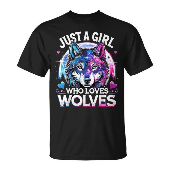 Just A Girl Who Loves Wolves Galaxy Space Wolf T-Shirt